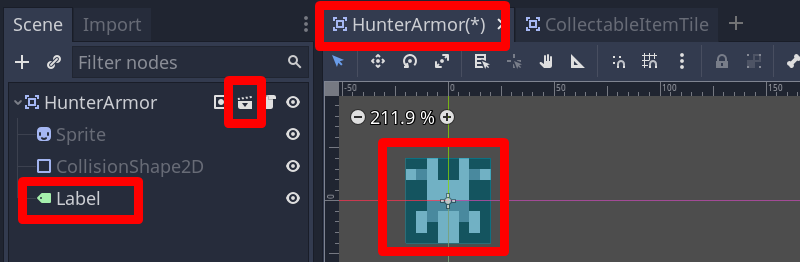 A New Inherited Scene can be created with the “CollectableItemTile” Scene as the parent: