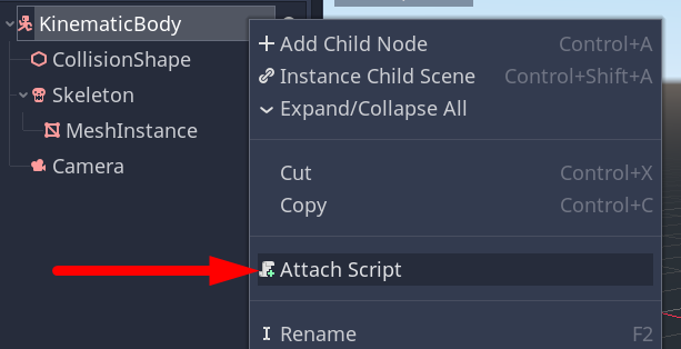 For example, by adding a script to a KinematicBody Node, you have all methods and properties available to make a character (or any other moving physics object).