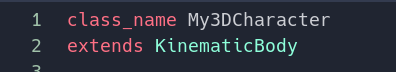 Or with C#: public class MyInheritedCharacter: My3DCharacter.