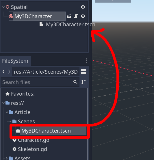 The scene is going to be added to the Node Tree as a Node itself. In the end, Scenes are a Tree of Nodes, being effectively a Node by itself – remember that in our 3D Character, we composed it with some Nodes, then saved it as a Scene
