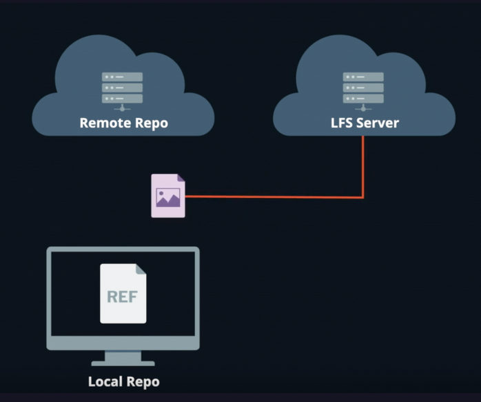 When using Git LFS, your commits will point to a lightweight reference object instead of pointing back to the binary file (you’re actually pushing the original binary file to an LFS repo).
