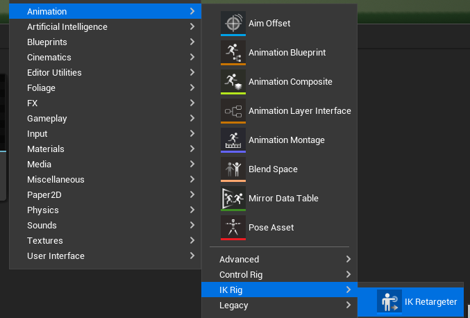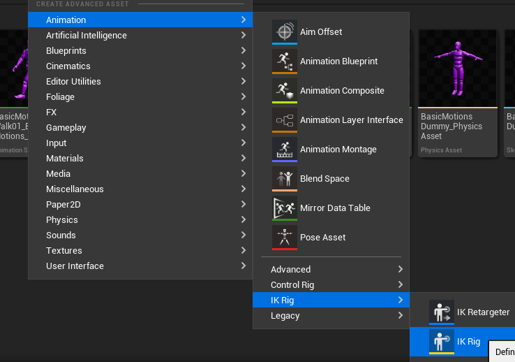 In order to share animations between the packs in Unreal Engine, similarly to Unity’s Mecanim, you need to manually create an IK Rig for each of the character and animation packs that you imported. In my case, I created an IK Rig for BasicMotions and one for the Synty Characters (at least it’s one IK Rig per pack, not for each character).