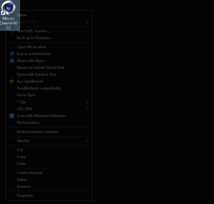 - Right-click a Cinema 4D shortcut and go to Properties.
