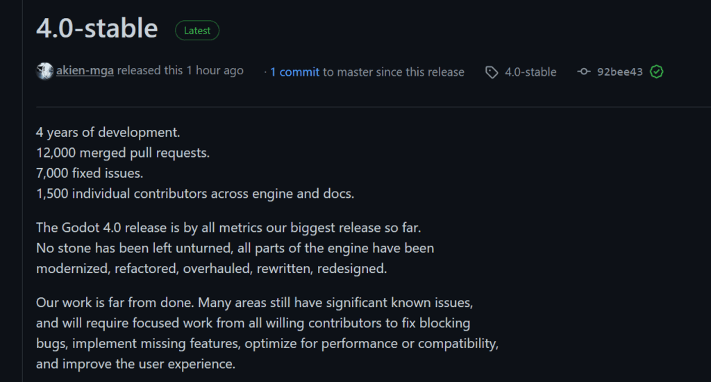No more waiting for Godot 4.0! You can finally download Godot 4.0 stable. After more than 3 years of an impressive community-driven effort with thousands of developers and almost 22000 contributions, Godot 4.0 is finally here!