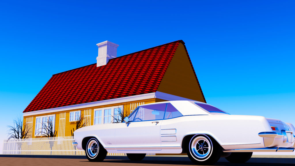 My wife found in Skagen – Denmark, a rectangular and squared yellow house and a white car, just like children's drawings – she even said: "oh this is how I used to draw houses and cars"! She got so excited about her finding that she took many photos and got very happy with it.