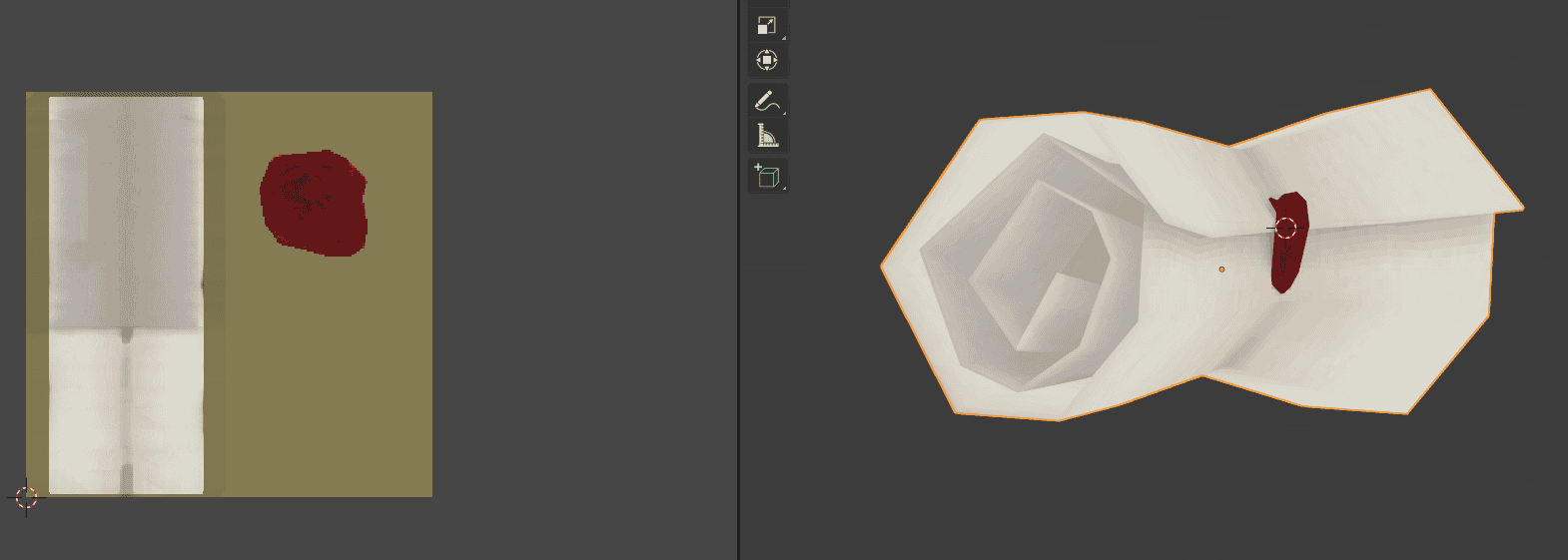 Day 101: Paper Scroll Folded June 19, 2021 Created with a single vertex, then extruded it around and added a Solidify modifier. A PS1 low poly paper scroll made in Blender. Process Update Baked AO and added on top of the texture (multiply), for better shape visibility. ← Previous post Day 100: Shovel Low Poly Textured Next post → Day 102: Simplified Lamp from World of Warcraft