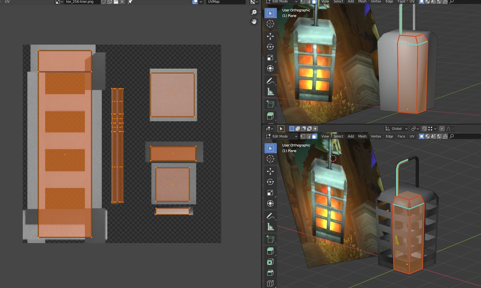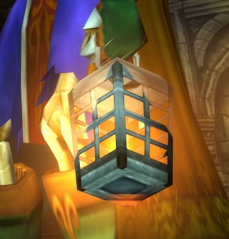 I wanted to create a World of Warcraft lamp (a type of item for the "Off-Hand" slot) and I decided to make the geometry as simple as I could, where I set the details via the UV mapping and with texture alpha. I managed to accomplish that (the cut-off rectangles come from the texture, not from the geometry).