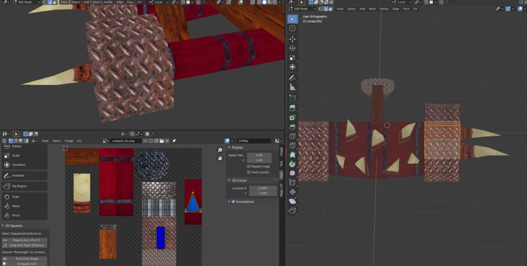 Day 129: Horde Catapult (WoW PS1) July 17, 2021 Updated: July 17, 2021 This turned out very satisfying. It took a long time because I really enjoyed playing around with different textures, finding the "right" wood and metal, etc. Process ← Previous post Day 128: Horde Catapult Assembled and UV Mapped Next post → Day 130: Old Brick Wall Tileable Texture