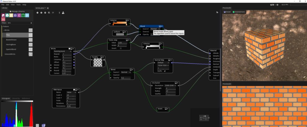 Material Maker is a free and open-source alternative to Substance Designer. Of course, a lot of features are missing (and there's no Undo), but Material Maker is still a wonderful software made by just ONE person! And still, it's quite powerful. I followed the official intro and made a procedural brick material.