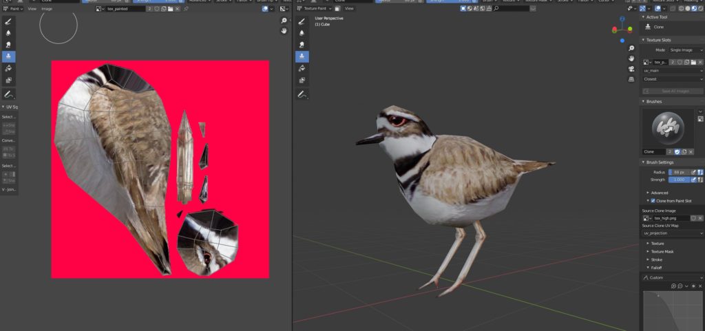 Used texture projection to paint a new texture for the Day 81 bird, and then repainted over the seams to try to have a better texture.