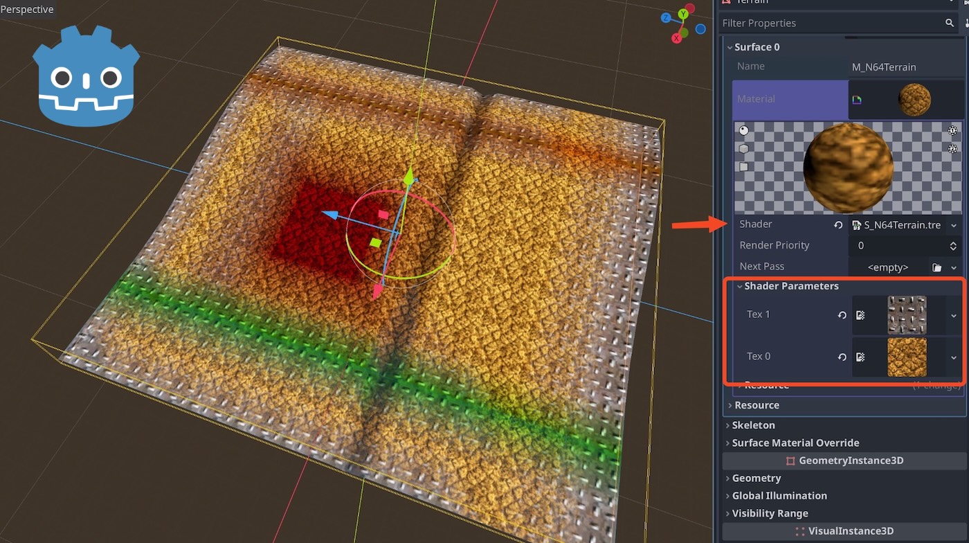 In this article, I explain how I created a Banjo-Kazooie (Nintendo 64) terrain and level material in Godot, with a Visual Shader, importing the terrain created in Blender, that makes use of two texture channels and blends them using the vertex color alpha and vertex colors for details and fake lighting and ambient occlusion.