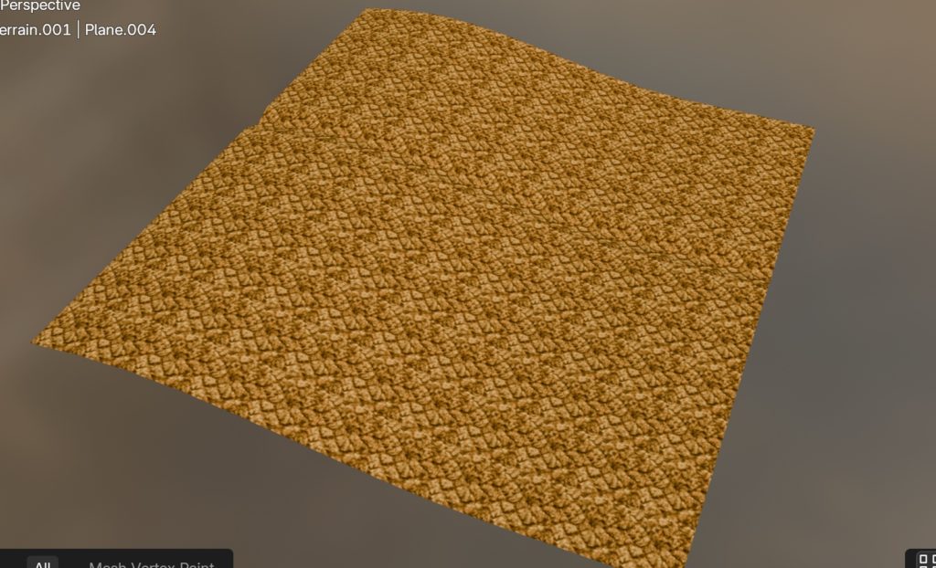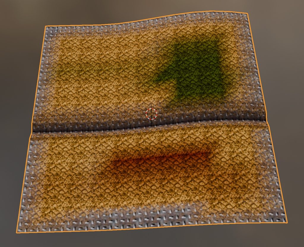 After painting some vertices and adjusting the vertex alpha of others, this is how it looks with the texture blending and the vertex colors, you can see texture 2 blending with texture 1, as well the colors:
