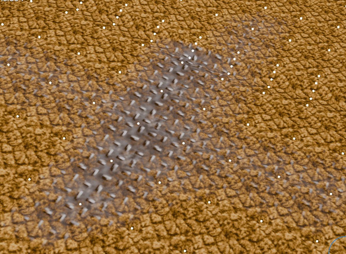After erasing the vertex color alpha from some vertices, you can see texture 2 blending with texture 1, just like how it happens in Banjo-Kazooie: