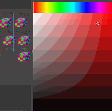 To pick up a darker color relative to your current color: decrease brightness, and then slide to a COLDER HUE: