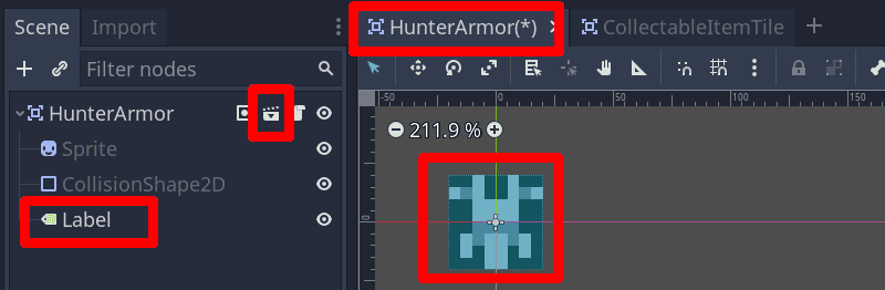 A New Inherited Scene can be created with the "CollectableItemTile" Scene as the parent: