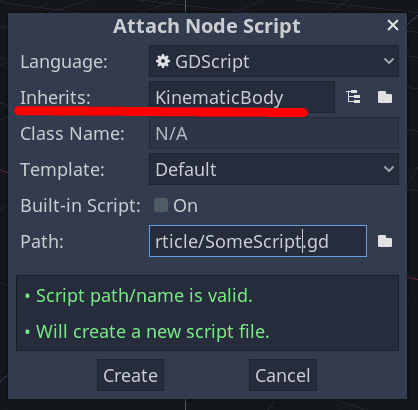 With C#, you inherit from the same base class: public class YourCustomClass : KinematicBody.