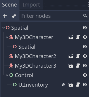 You learned that Nodes are arranged and composed in trees. The next step is re-using and/or re-combining those trees, as well instantiating them. For example, what use is to create a 3rd Person Character Node Tree, if it exists in a single place? How to you place in-game? How can you place more than one character? How can you use your character to also serve as NPCS? How can we package those Node Trees in order to have a single source of truth for a certain composition and behaviour and then instance and even inherit from them?