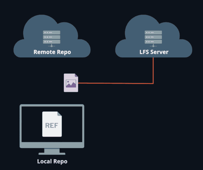 When using Git LFS, your commits will point to a lightweight reference object instead of pointing back to the binary file (you're actually pushing the original binary file to an LFS repo).