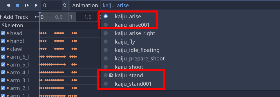 - Instead of updating the animation tracks in use, Godot duplicates the updated animations and it keeps creating duplicates every time you update the animations externally