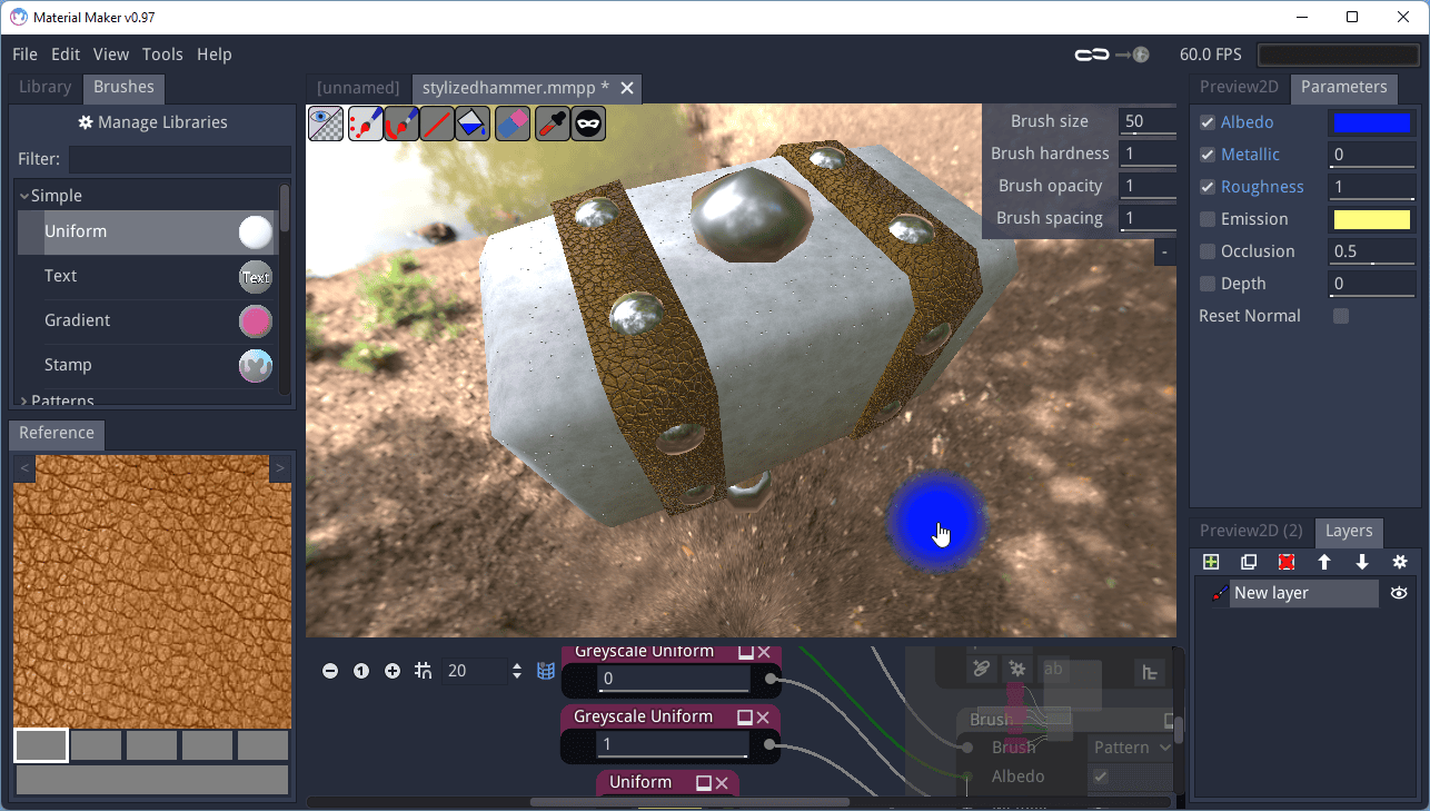 Material Maker is a procedural materials authoring and 3D model painting tool, based on the Godot Engine. Materials and brushes are defined as graphs where nodes create or transform textures, and can be exported for the Godot, Unity and Unreal game engines.