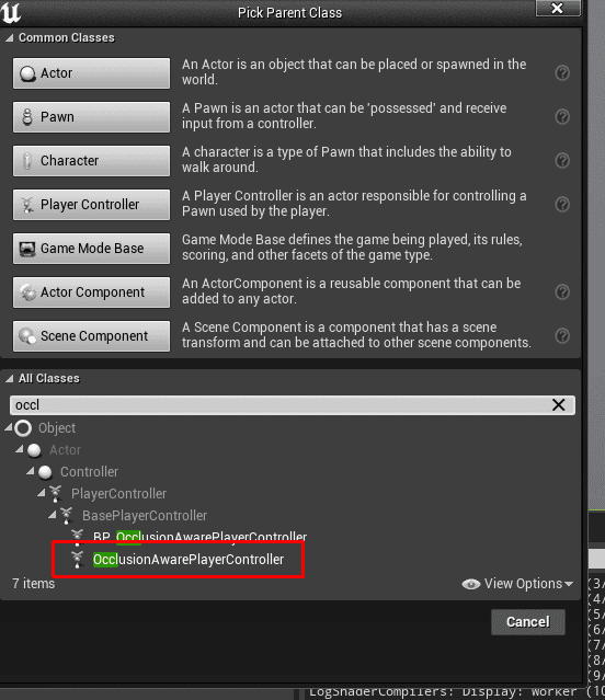 - Name it OcclusionAwarePlayerController, or whatever name you prefer.